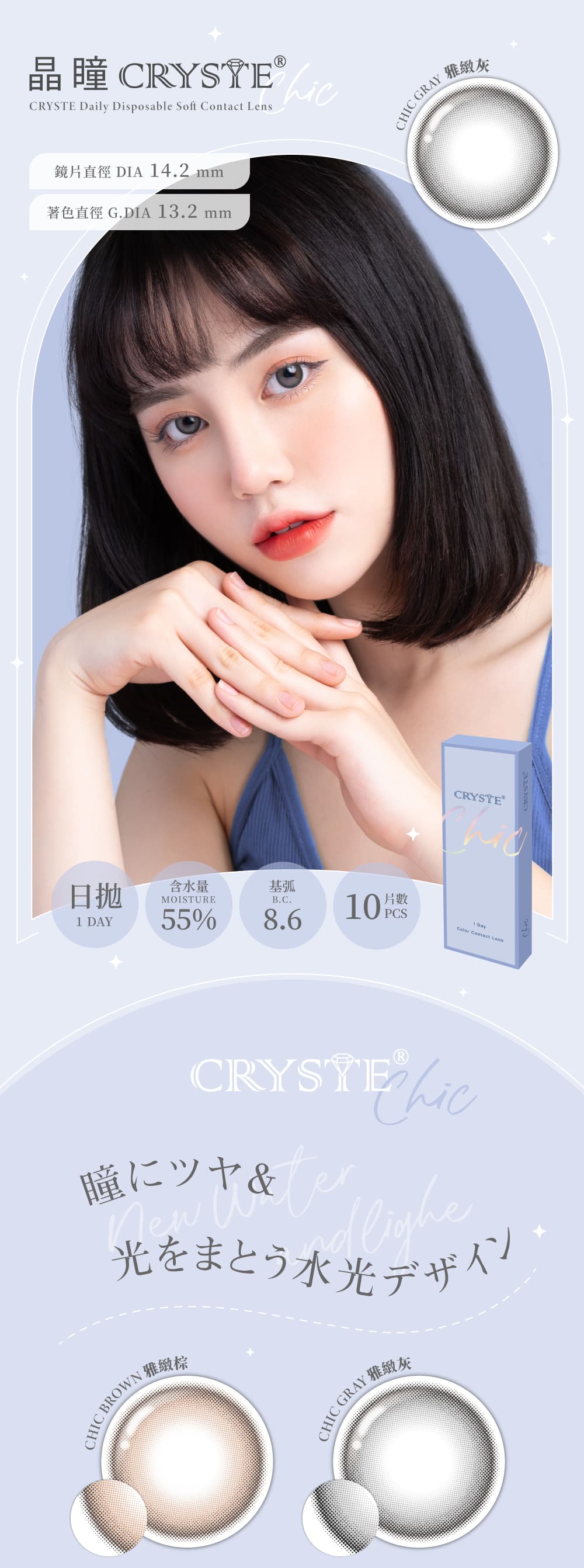 CRYSTE晶瞳CHIC彩色日拋10片裝-雅緻灰
